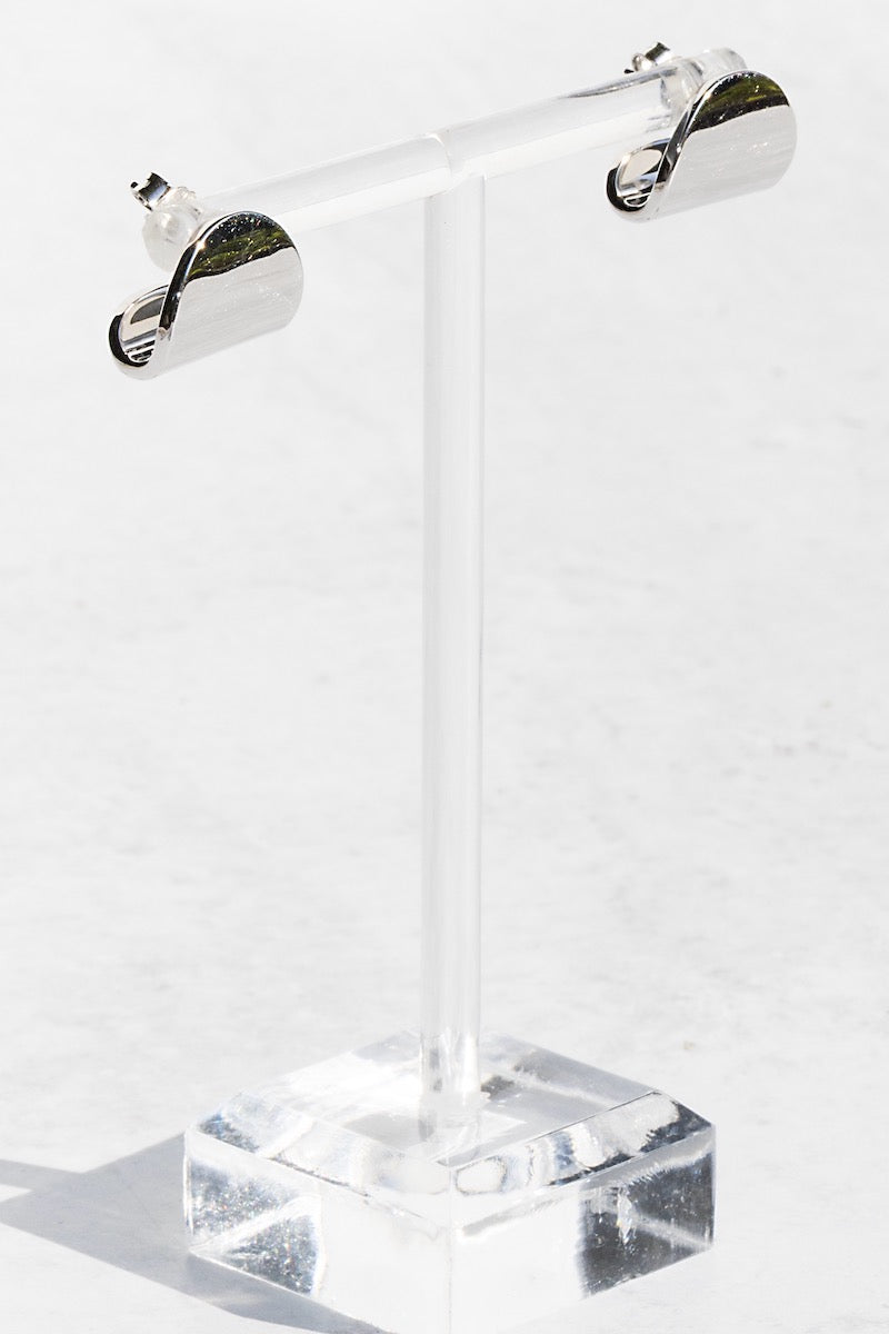 Sleek and sculptural, these sterling silver plated earrings are designed to gently curve around the earlobe, offering a contoured fit that’s both modern and comfortable. Lightweight and refined, they bring a subtle edge to any look.