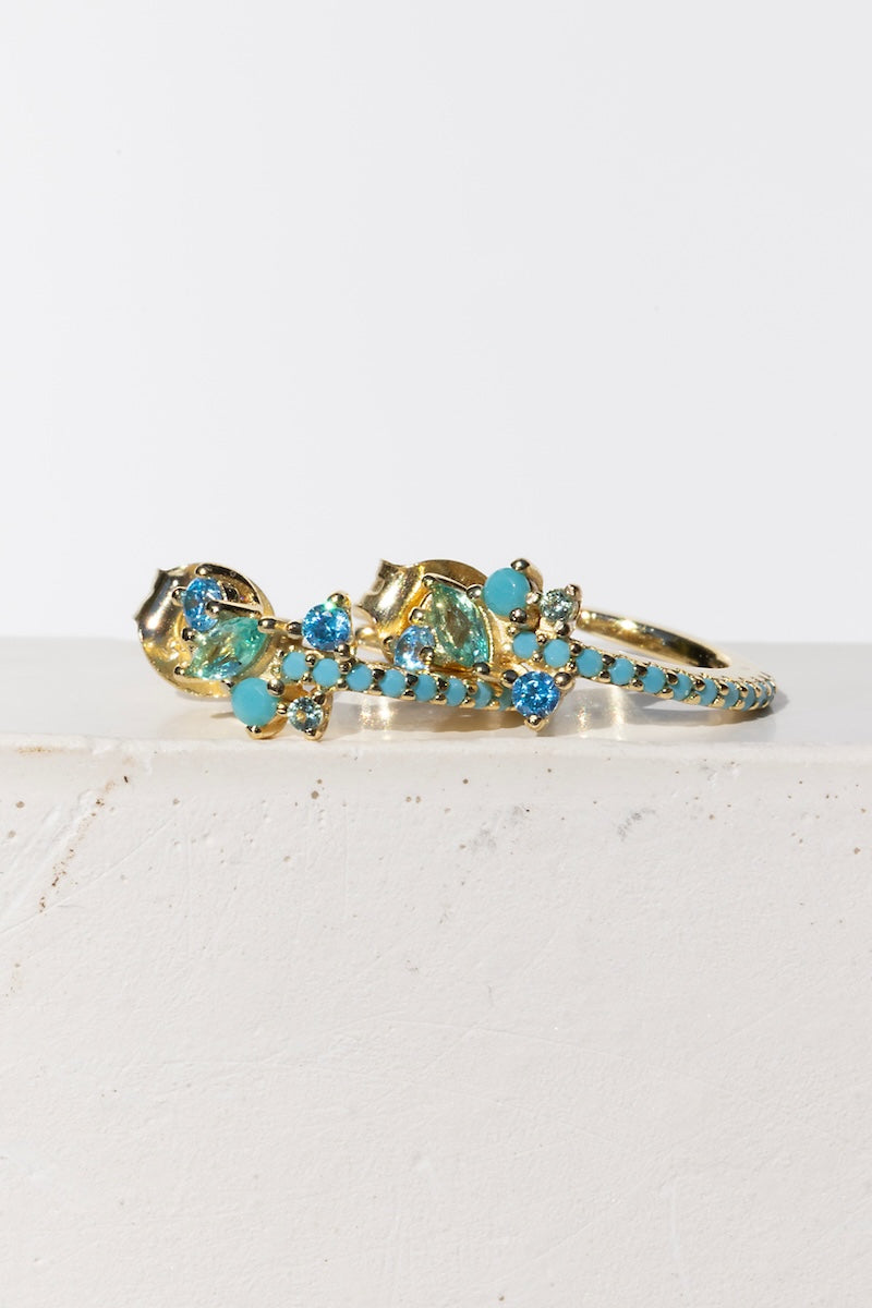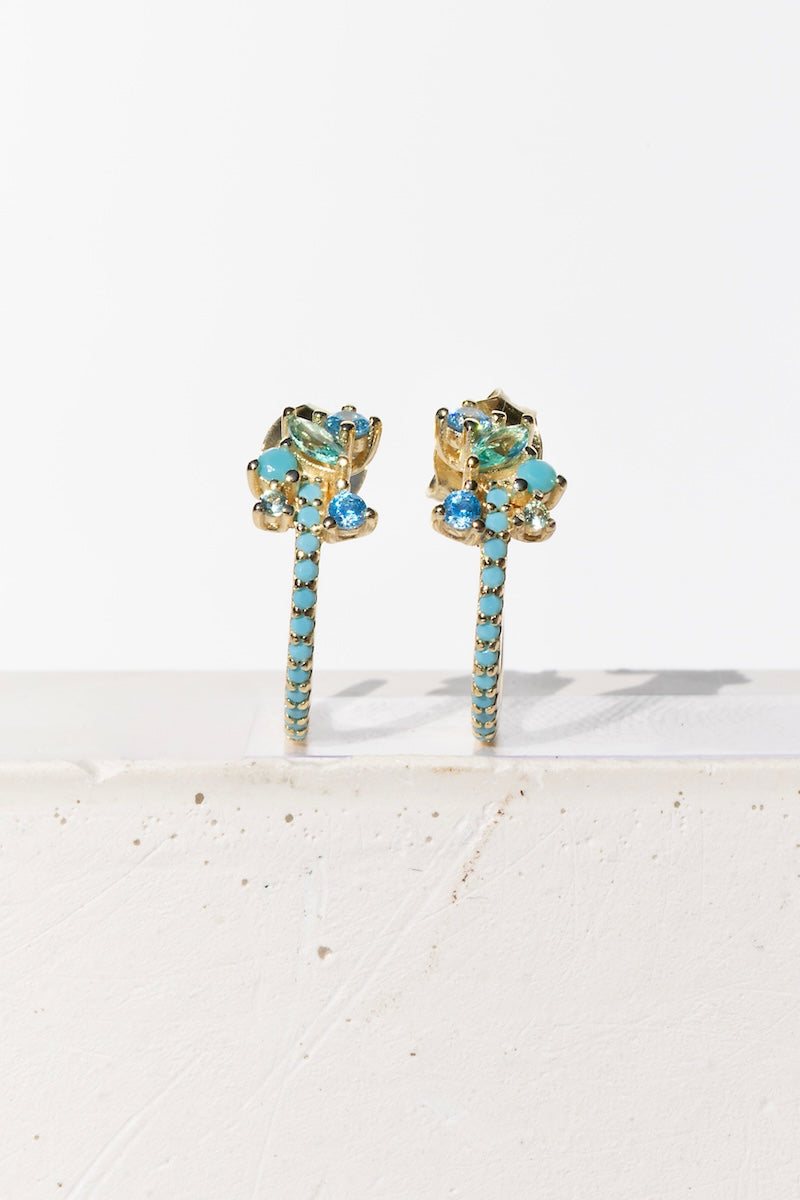 Crafted in 14K vermeil and adorned with multi-cut gemstone turquoise cz, these tiny ear huggie earrings will add a hint of sparkle to your everyday look.