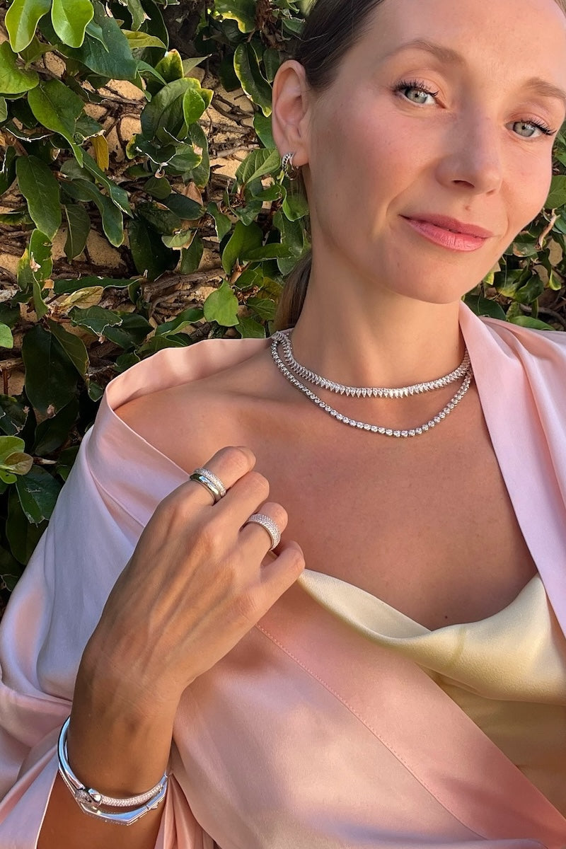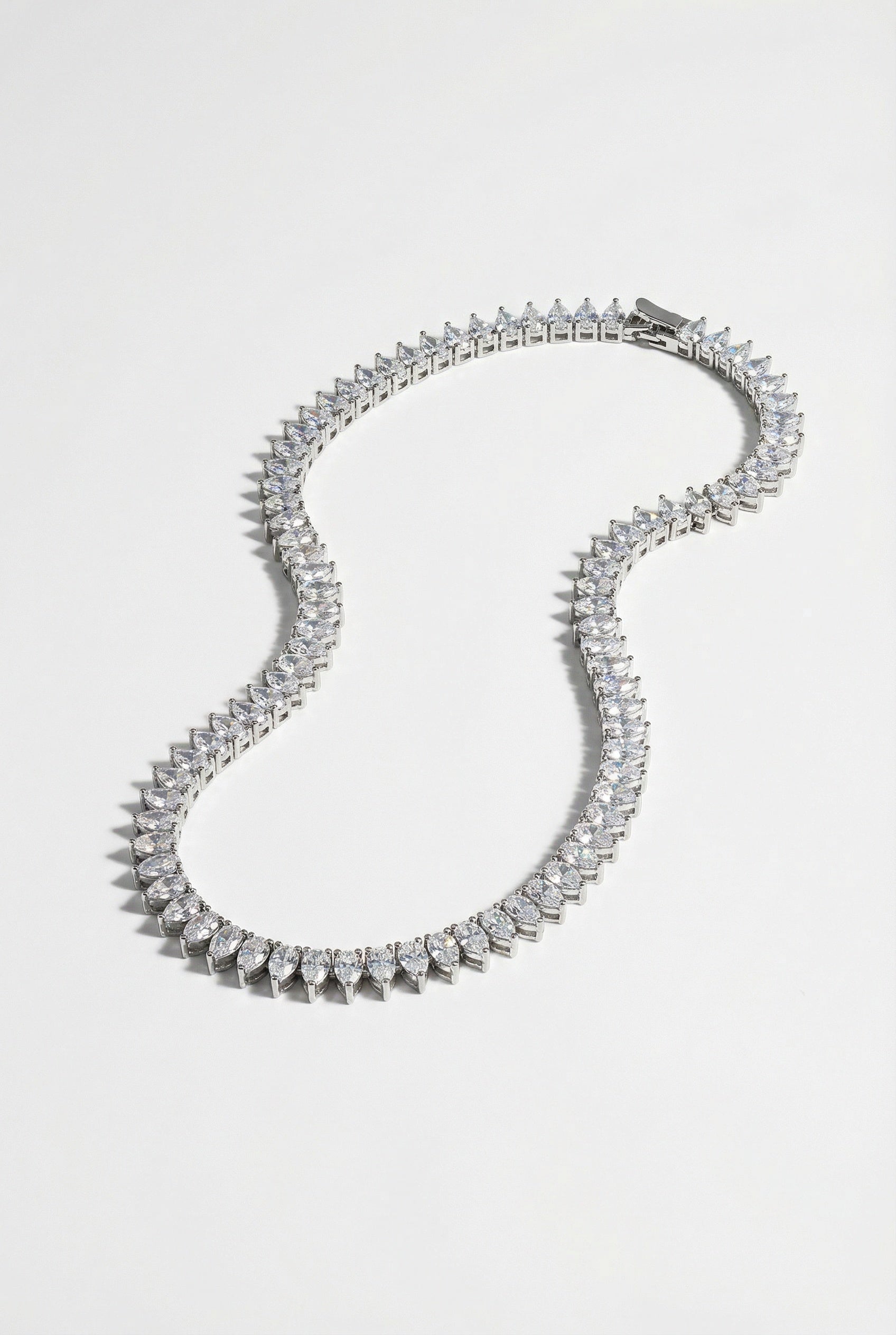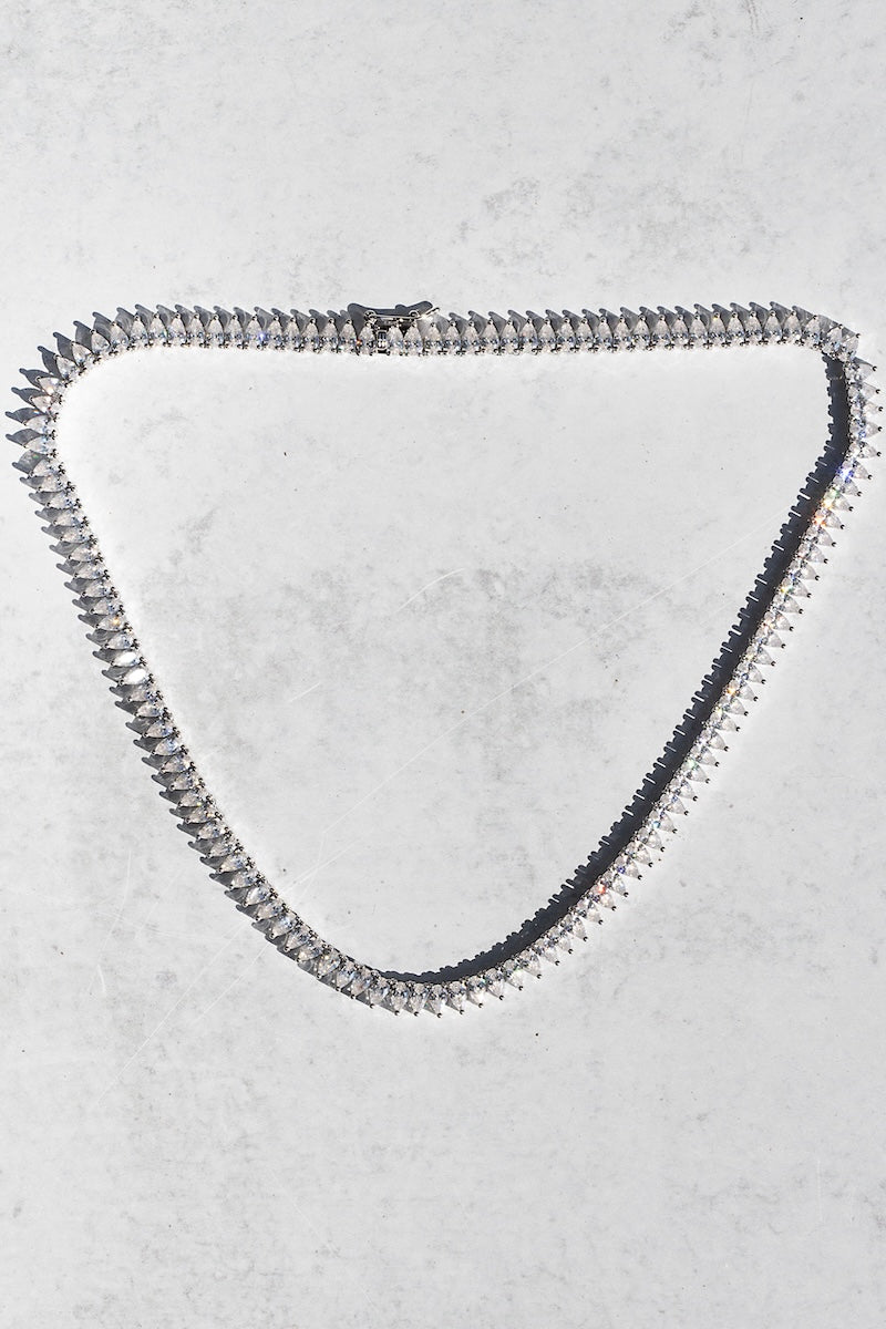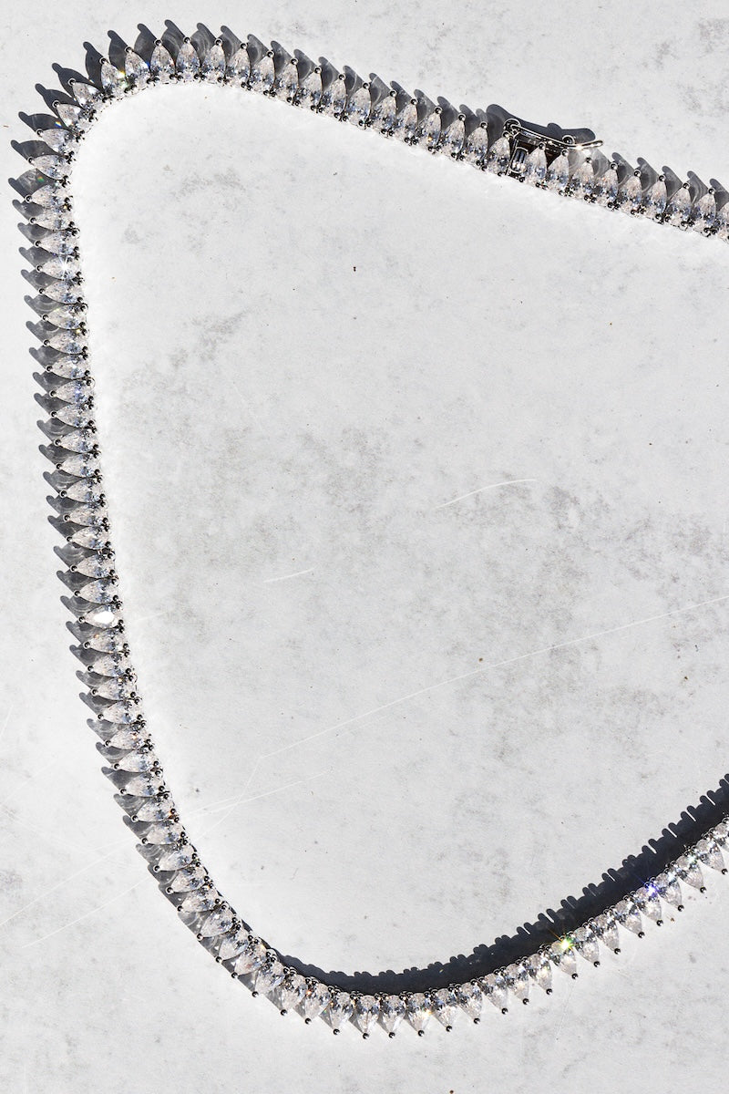 Crafted sterling silver plate, multi teardrop cubic zirconia and adjustable ball chain necklace. This intricate necklace features multi teardrop cubic zirconia stones that sparkle and shine. The adjustable ball chain completes the look, giving you a custom fit so you can show off your style with confidence.